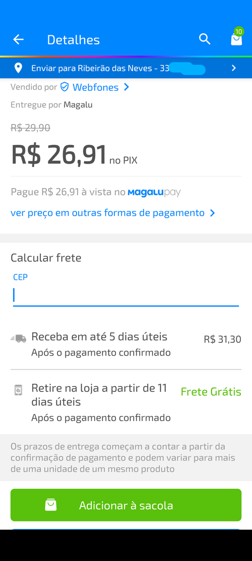 Aqui deu retirada grátis.