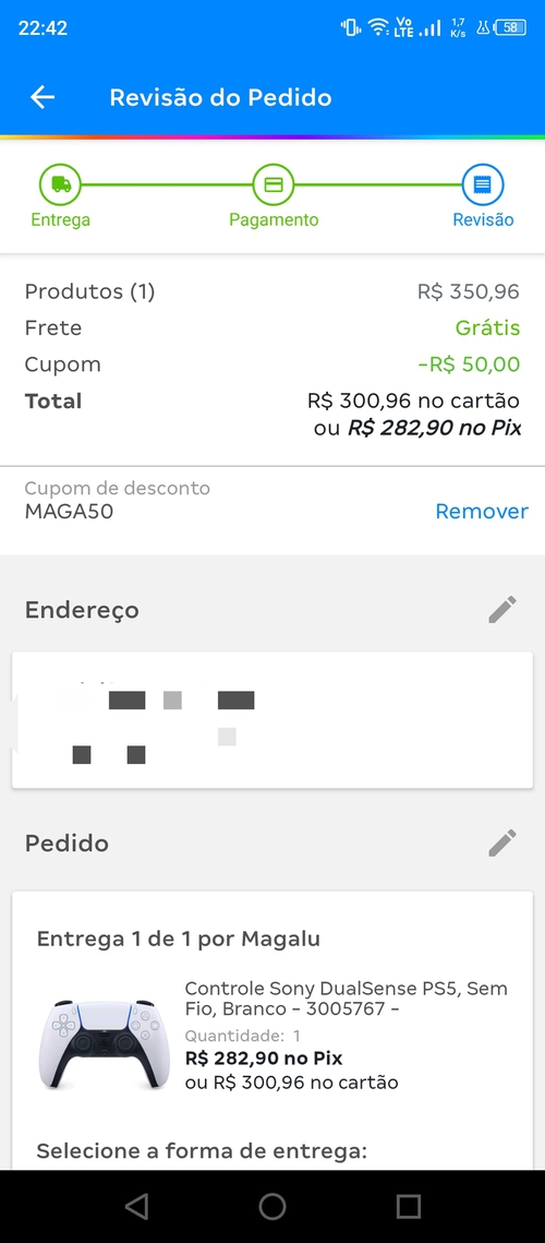 PIX R$282,90 ////// Cartão R$ 300 até 3 x sem juros