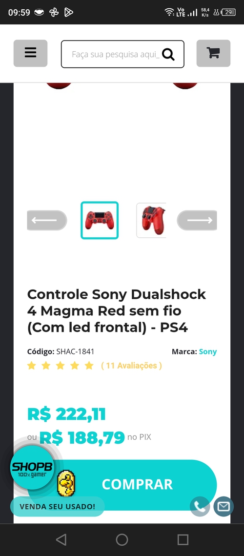 Controle Sony Dualshock 4 Magma Red sem fio (Com led frontal) - PS4