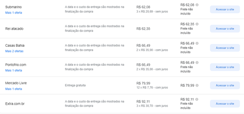 Menor preço segundo o Google Shopping