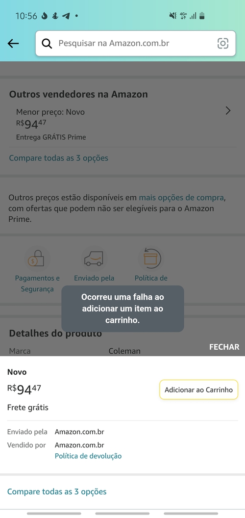 Galera, abra pelo app, se o valor estiver 166, cliquei em outros vendedores, no meu deu certo!