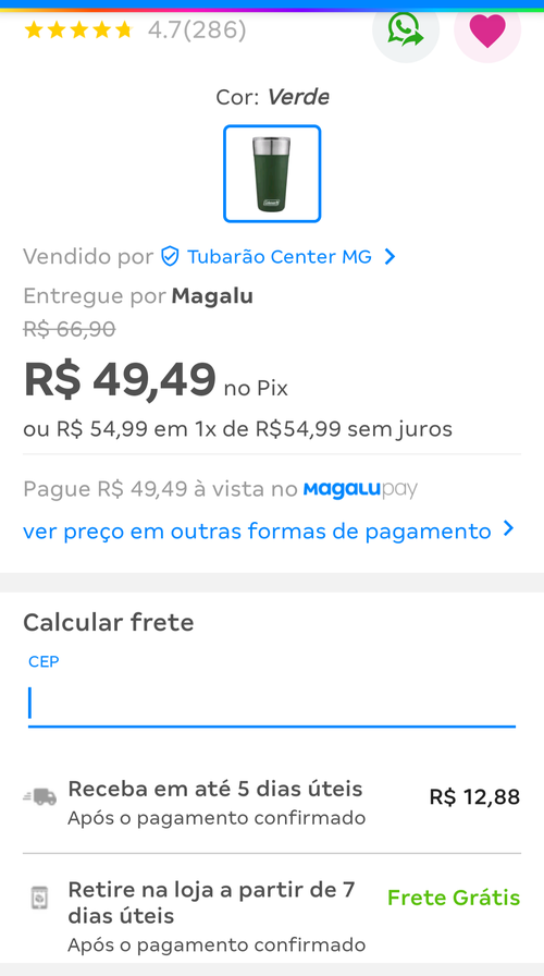 Cor Azul, mesmo preço e retirada grátis 🆓.