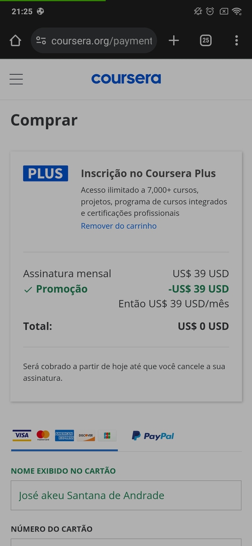 Pago 1 mês pra ficar interessado, e depois tenho que gasta 59 dólares por mês, ou seja, 300 reais por mês?