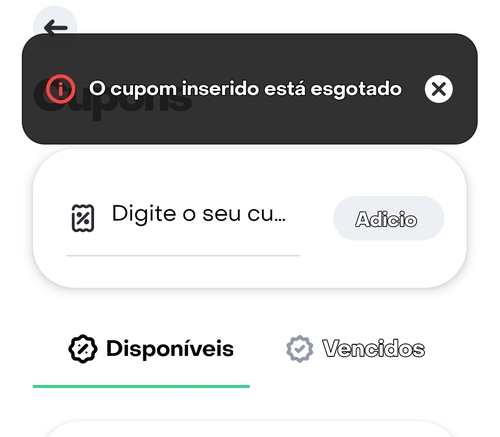 No app do Rappi, coloco o código e dá CUPOM ESGOTADO