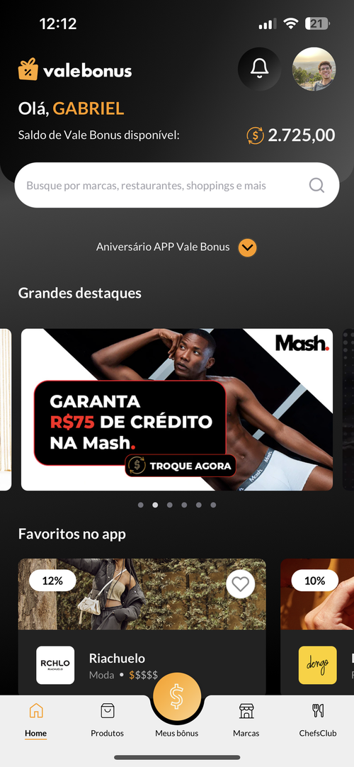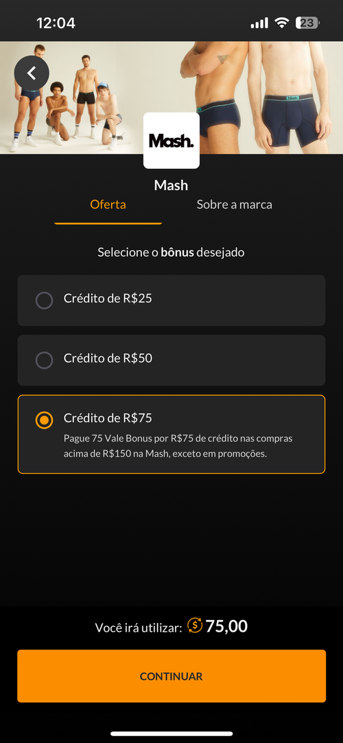 Crédito de R$75 na Mash acima de R$150 (Vale Bônus)