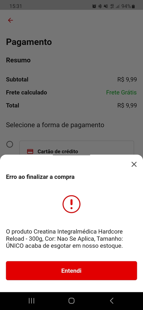 pqp. achei tão estranho que demorei a finalizar e deu esgotado.