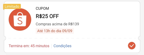 Resgate o cupom de R$25 acima de R$139 na aba de cupons