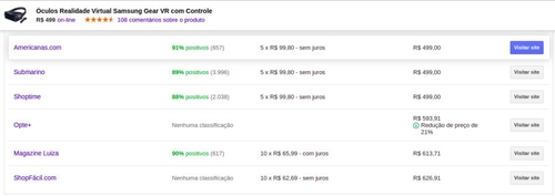 Óculos de Realidade Virtual Samsung Gear VR4 2D/3D com Visão 360º e Controle - SM-R325 | R$472