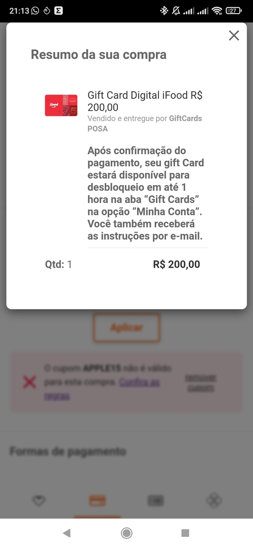 Cupom 15% OFF em Gift Card Ifood na Shoptime