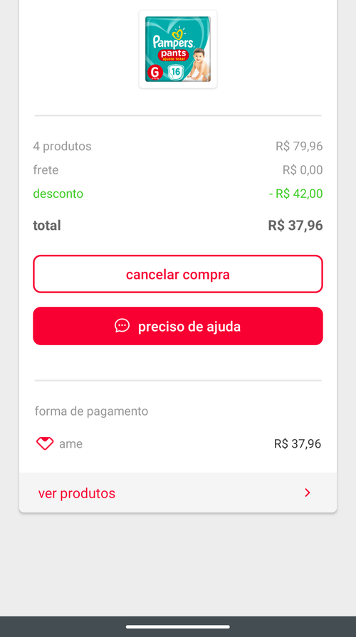 Consegui na conta do meu marido, acho que é quem fica um tempinho sem usar, pq na minha não foi. Foram 3 pacotes de confort sec por 31 reais e 4.80 de volta no Ame. Ótimo 😀