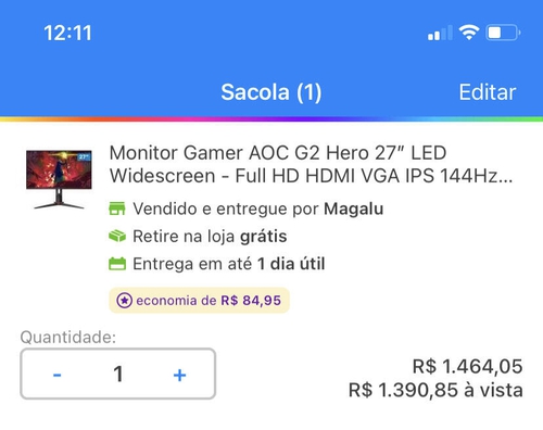 [CUPOM + APP + CLIENTE OURO] Monitor AOC hero g2 IPS Full HD 27” 144hz