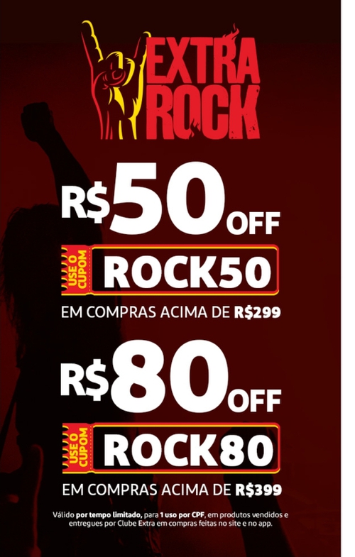 Tem também o cupom ROCK50 que é de 50 reais acima de 299