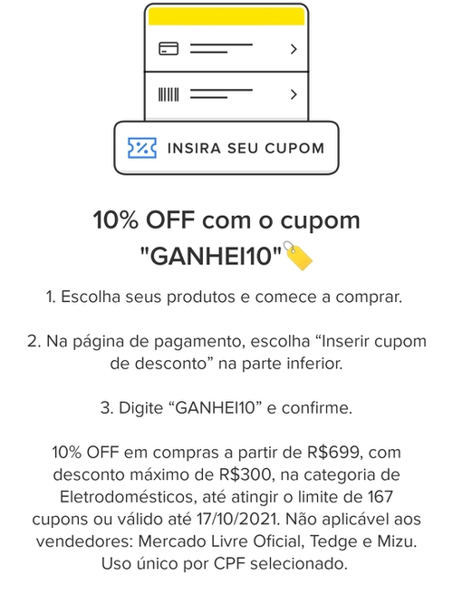 Cupom de 10% Mercado Livre (Eletrodomésticos)