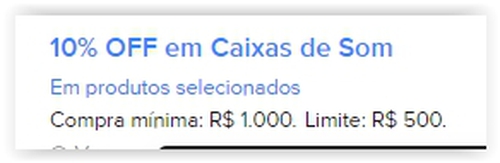 Cupom de 10% OFF em Caixas de Som , IPhone e S23