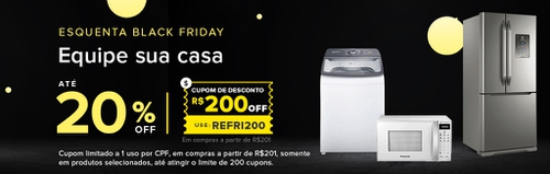 Cupom limitado a 1 uso por CPF, em compras a partir de R$201, somente em produtos selecionados, até atingir o limite de 200 cupons.