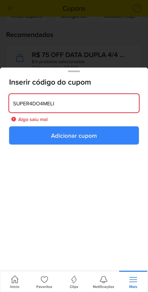Depois dessa vou desativar as notificações de cupom do Mercado Livre. Como eles lançam um cupom que não dura 10 minutos? Só pra causar frustração para quem não consegue pegar. Tava no carrinho e eu só tava escolhendo mais um produto pra completar os R$199 e sumiu. T.N.C