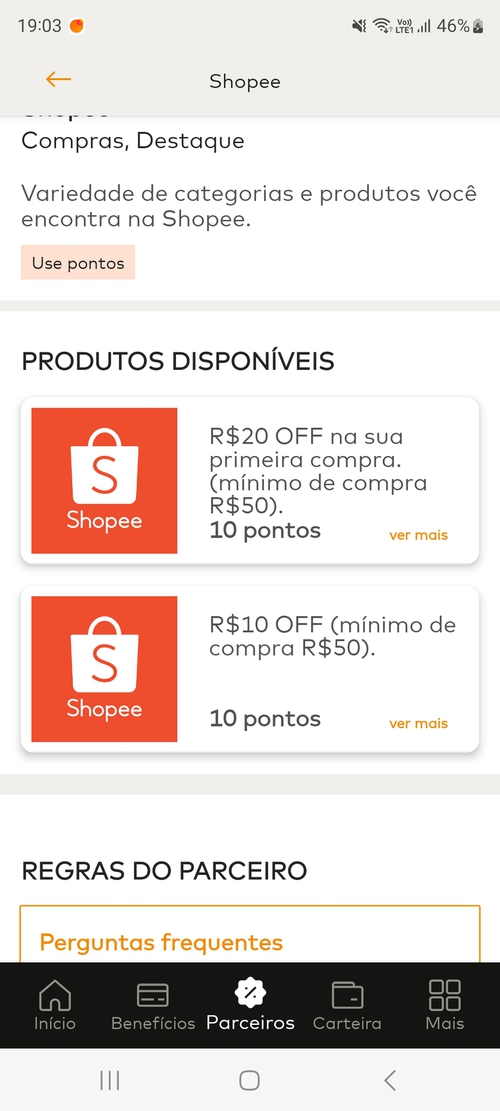Custa 10 pontos o cupom de desconto, entretanto não entendi a mecânica, se já comprei no Shopee não ganho o desconto?