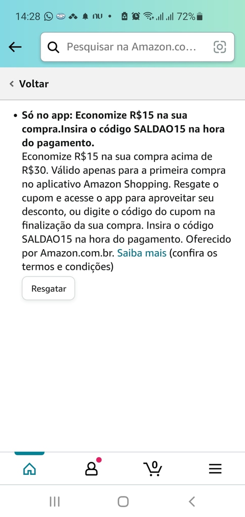 No final dos detalhes da promoção tem a opção de resgatar o cupom.