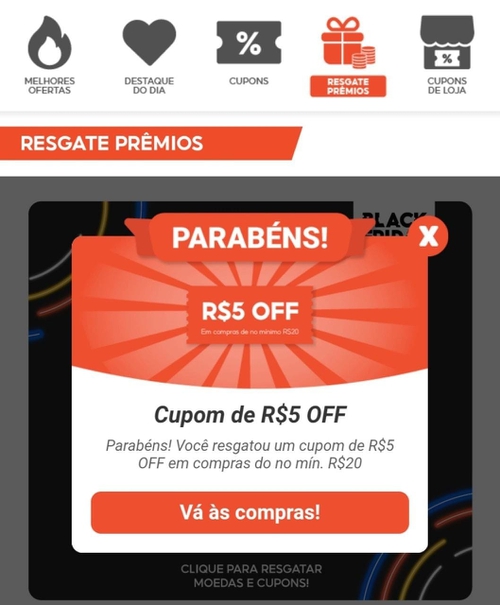 acima de R$20 Acesse o link, clique em Shopee Prêmios no menu e depois é só clicar "Resgate agora" para ganhar.