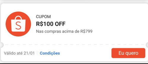 Cupom de R$ 100 off acima de R$ 799 na Shopee