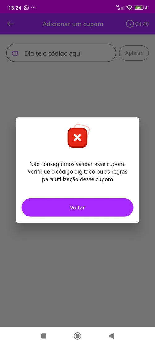 Aqui não funciona aparece essa mensagem.