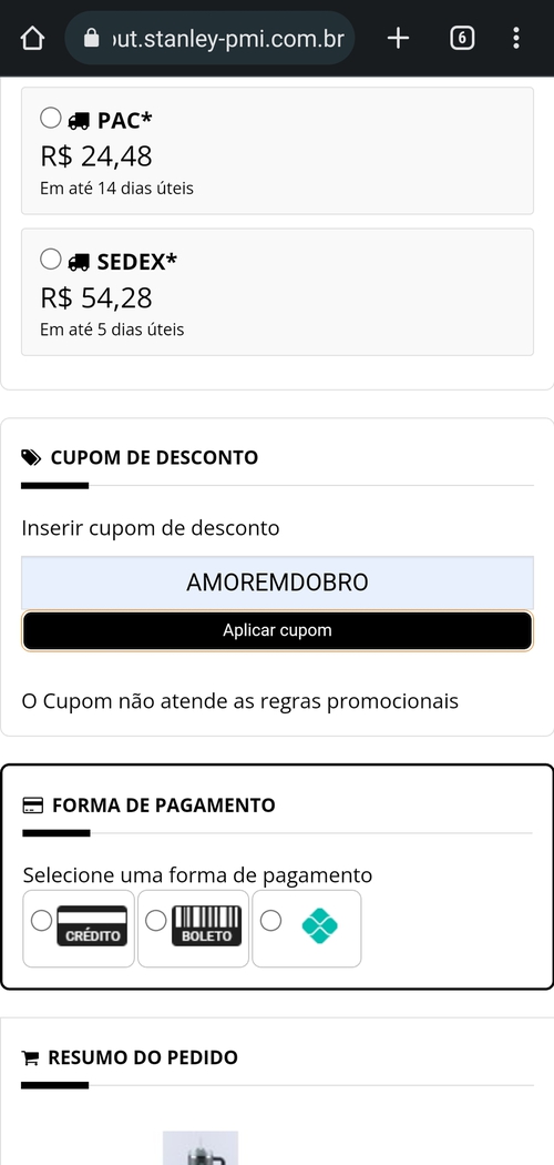"O Cupom não atende as regras promocionais"cupom nao funciona com nada...
