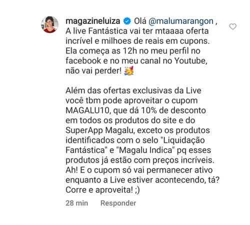 Desconto em todo site e APP Magalu aparti das 12:00 hs, exceto para produtos identificados com selo "LIQUIDACAO FANTASTICA" e "MAGALU INDICA".