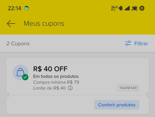 Acreditem se quiser, o cupom 1GANHAR foi aqui. 🙌