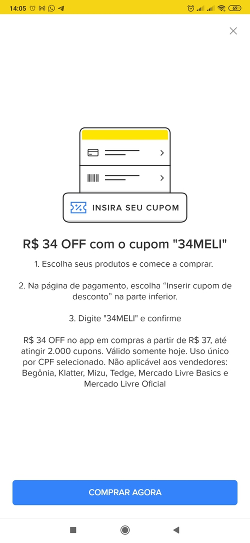 Depois que aprovou a compra, deu erro, refiz a mesma compra e dá que o cupom é inválido pra essa compra, palhaça ML