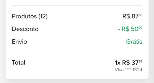 Valeuu! Aqui deu 50 verdes de desconto para pedido mínimo de 90 reais.