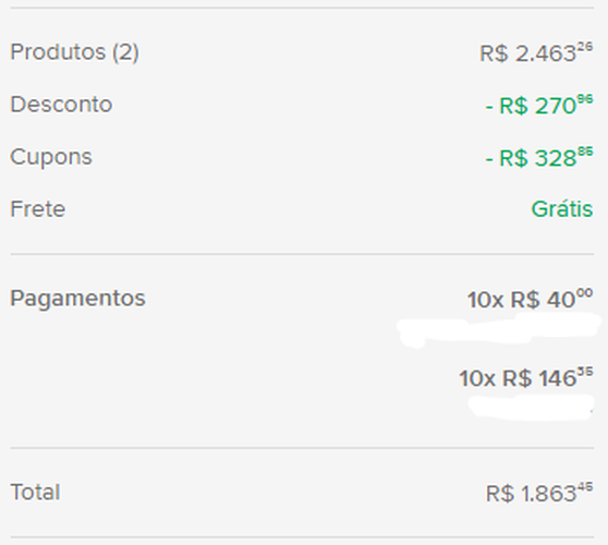 Uffa! Consegui cancelar uma comprar de 2900 que só tinha usado um cupom de 80 e comprei de novo com esse desconto de 400 👀