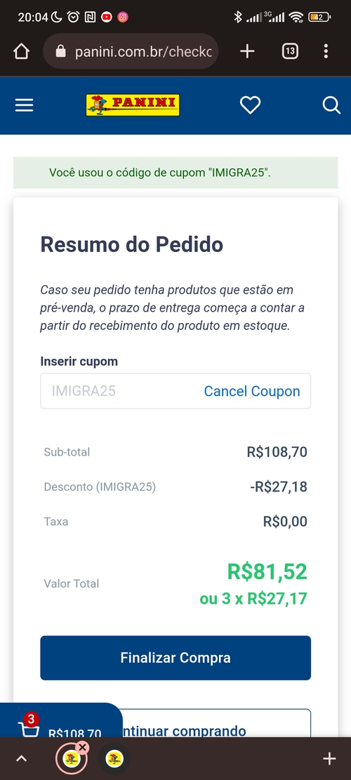 Cupom de desconto de 25% para todo site Panini válido até 19/06/23.