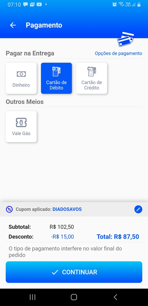 Pena que no App o gás aqui custa R$20 a mais. Então no lugar de R$118, ficaria R$123. kkkkkkkkkkk