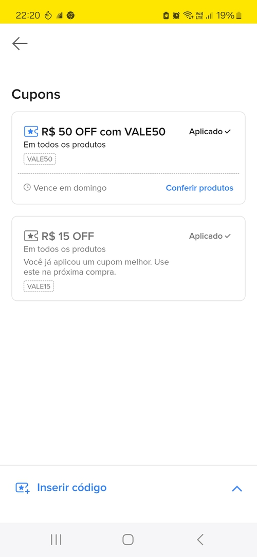 Você já usou este cupom. kkkkk quem usou o VALE50 esse nao vai pegar?