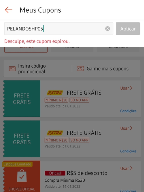 Aproveite o cupom PELANDOSHP05 para garantir R$5 de desconto, em compras acima de R$20, em lojas oficiais da Shopee!