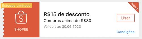 Cupom Shopee R$15 OFF em compras acima de R$80