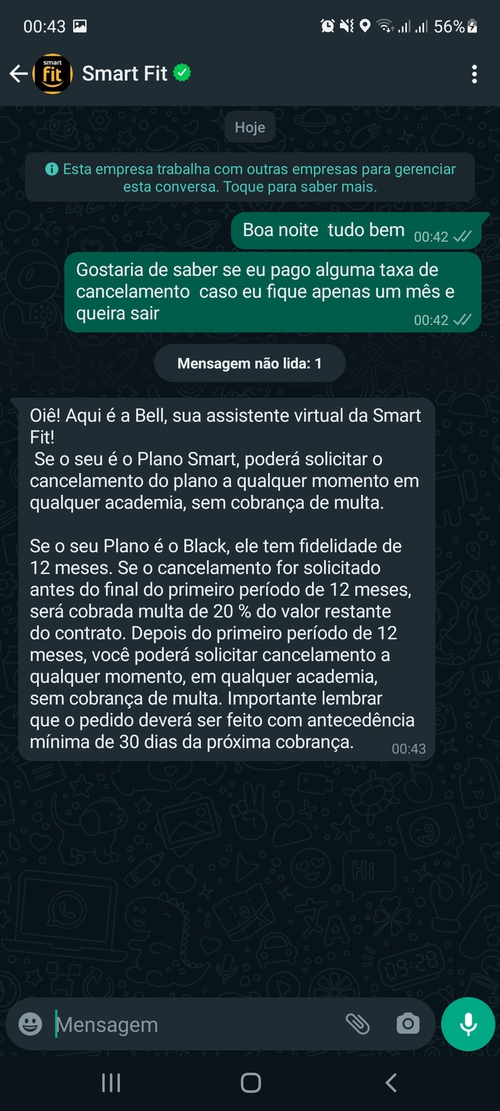 Fica a dica: pra cancelar na Smartfit tem que ser presencialmente e com 30 dias de antecedência. Ou seja, pra vc n pagar no próximo mês tem q cancelar no mesmo dia q se inscrever