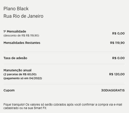 Não sei se ainda tem, mas vale mais a pena comprar aquele 'bumbum care' que dá 3 meses de smart fit black sem fidelidade. São 3 vouchers de 1 mês e custa R$ 149,90. Basicamente ganha um mês e meio de graça.