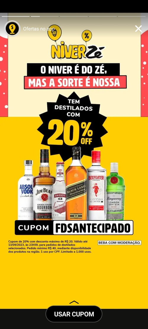 pelo oq eu vi o cupom é somente destilados, não sei se são todos ou só específico