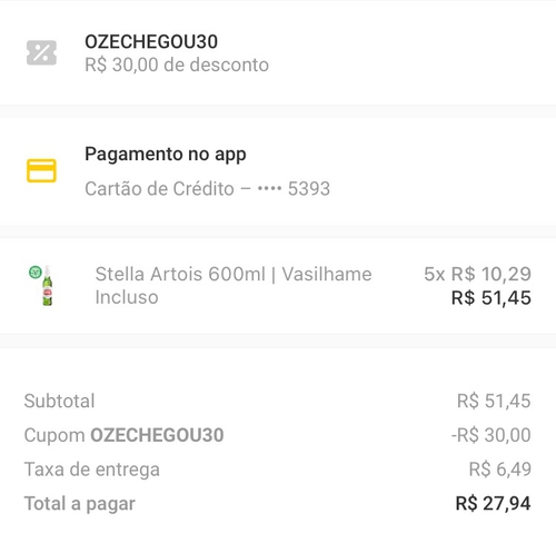 Aqui funcionou o cupom mas as adegas ficam cancelando 😶🌫️