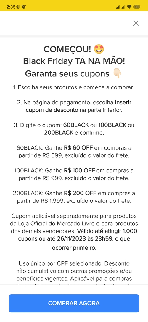 Obs. Só após quase 1h tentando que apareceu cupom esgotado