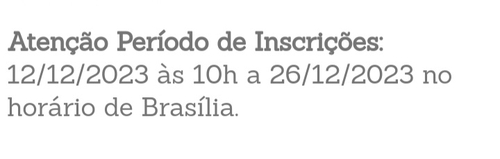 Período de inscrições: de 12/12/2023 até 26/12/2023