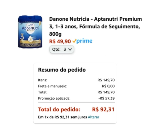 O desconto entra com 3, 6, 9... latas e aparece na última tela.
