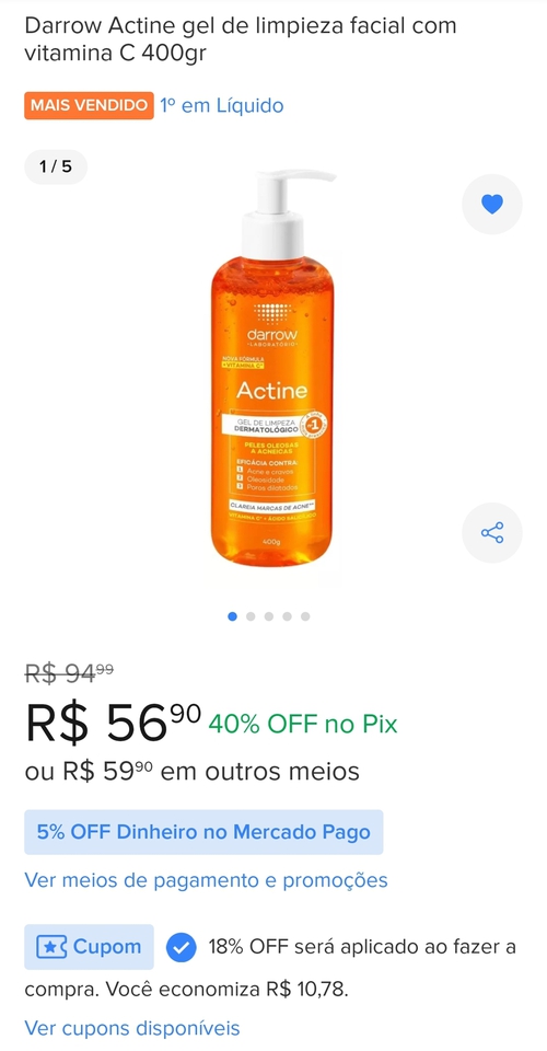 Darrow Actine gel de limpieza facial com vitamina C 400gr