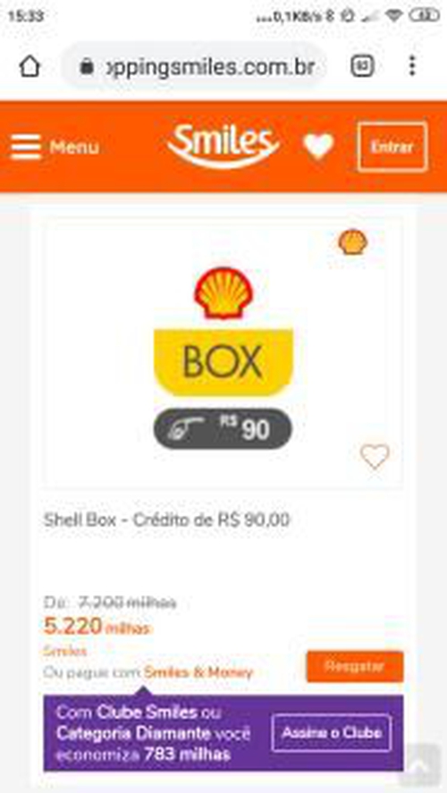 Desconto no resgate de milhas smiles por crédito shell box