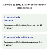No app da Porto Seguro temos desconto de 0,20 e 0,30 por litro de gasolina comum e aditivada.