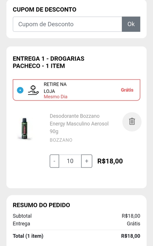 A quantidade desejada para o item Desodorante Bozzano Energy Masculino Aerosol 90g não está disponível