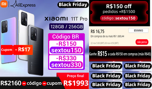 CUPOM ALIEXPRESS (-R$150,00) = sextou150 (24/11 05:00am - 28/11 4:59am)