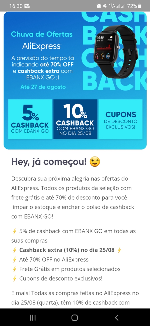 (DIA 25/08) 10% cashback EBANX GO no Aliexpress