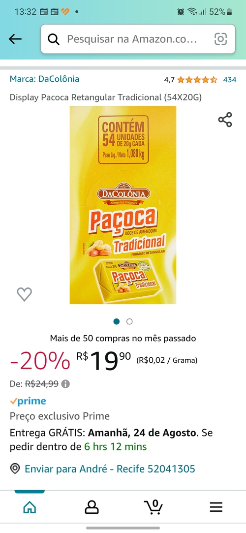 Após aumento de preço da paçoca rolha da marca, encontrei essa.